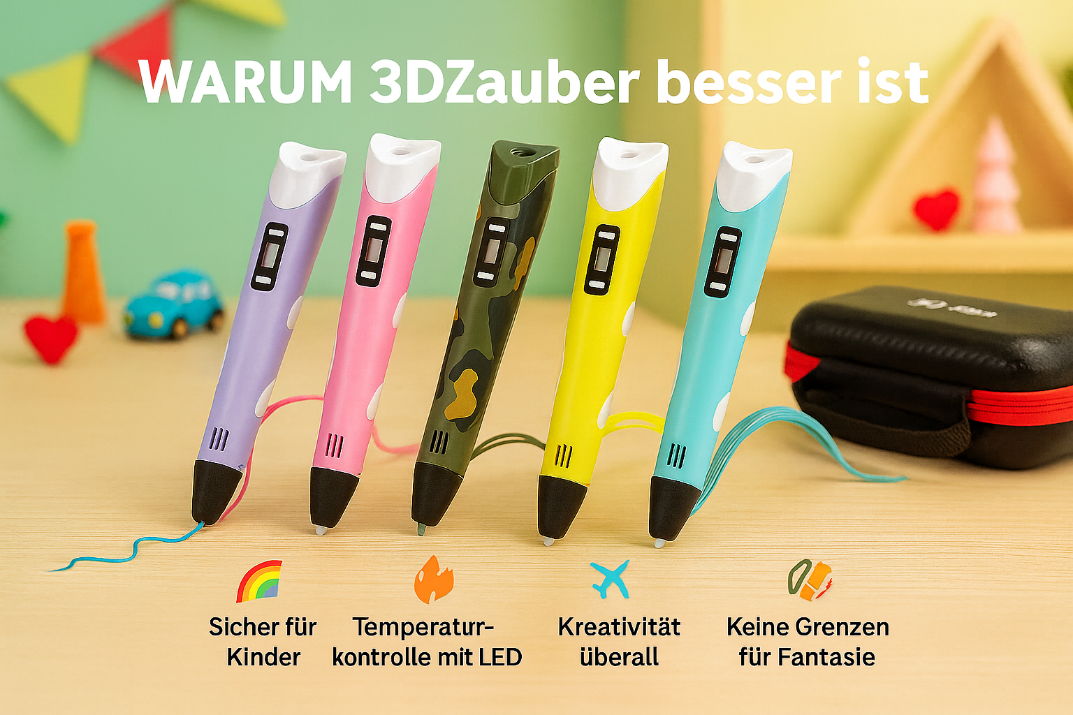 "3Dzauber – wo Ideen Form annehmen" 3D-Stift für Kinder mit PLA-Filamenten & Reiseetui