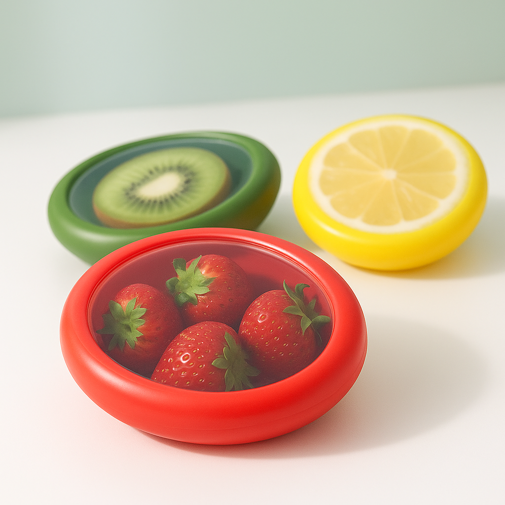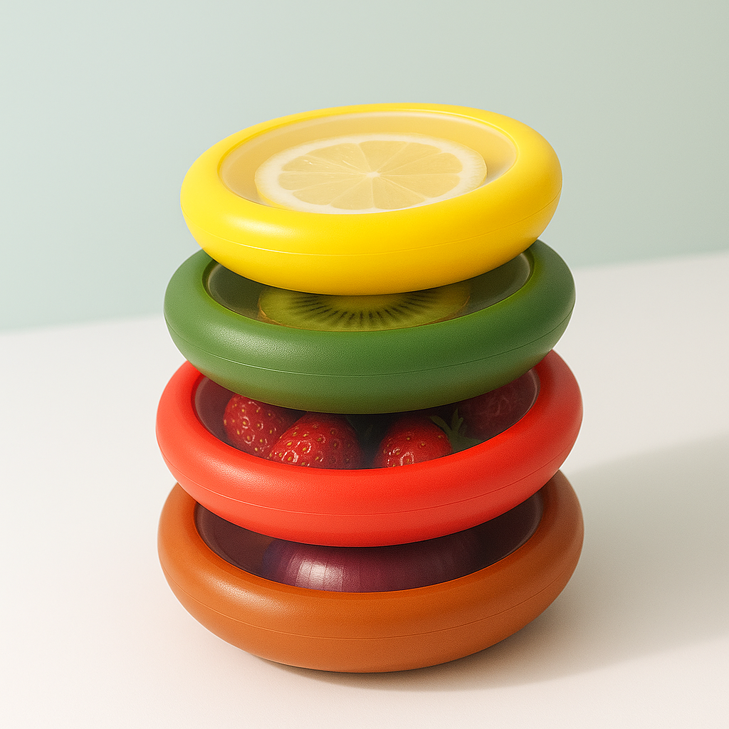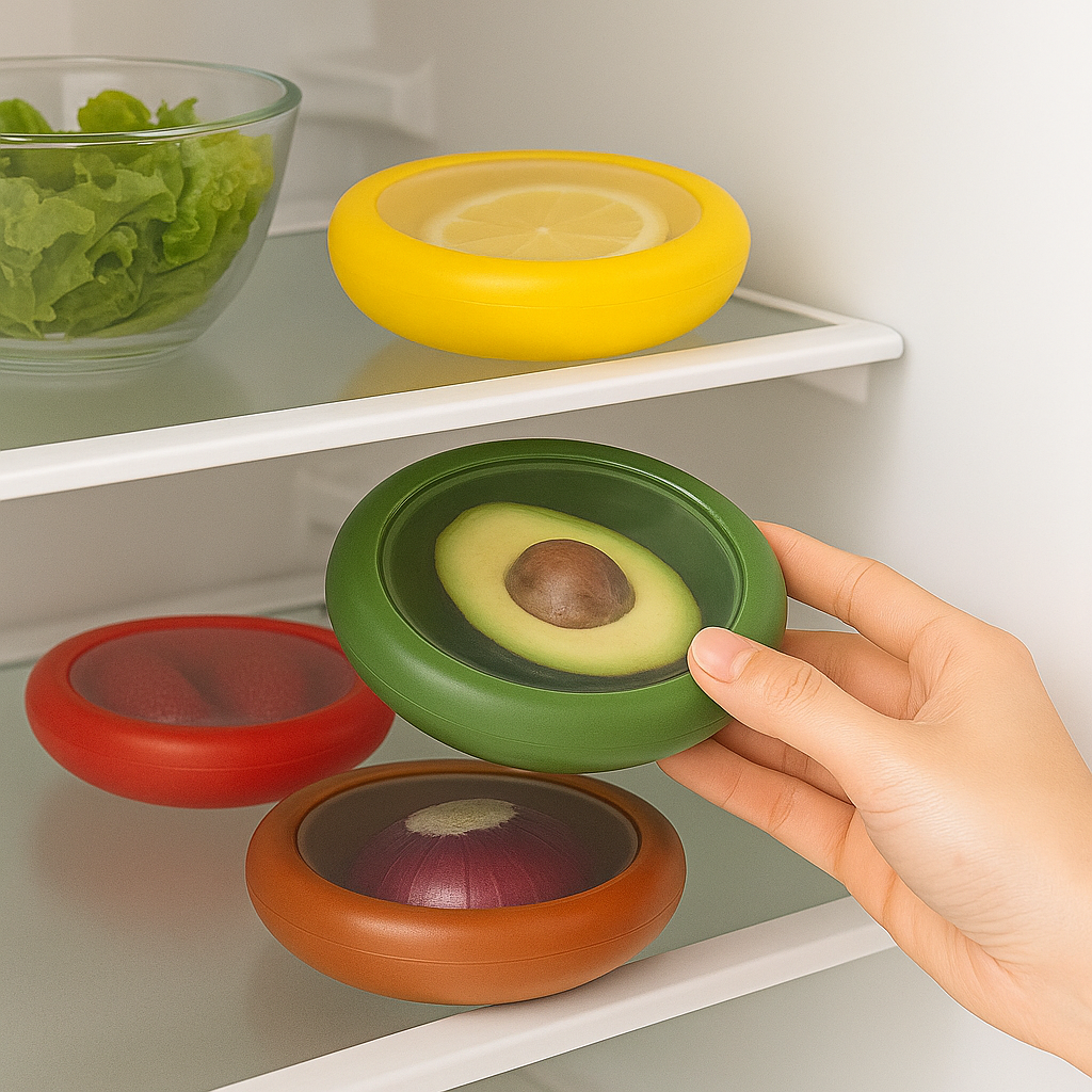 Es ist ein durchdachtes Frischesystem aus hochwertigem, flexiblem Silikon, das sich deinem Obst und Gemüse anpasst.